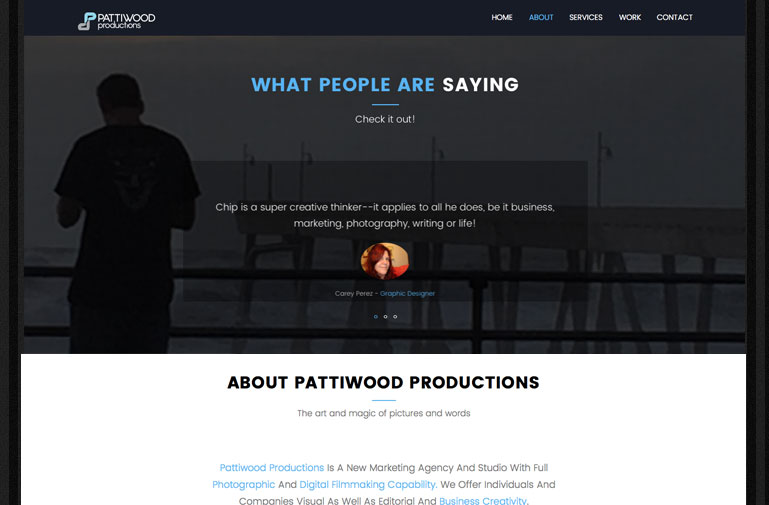Pattiwood Productions is a marketing agency and studio with full photographic and digital filmmaking capabilities.